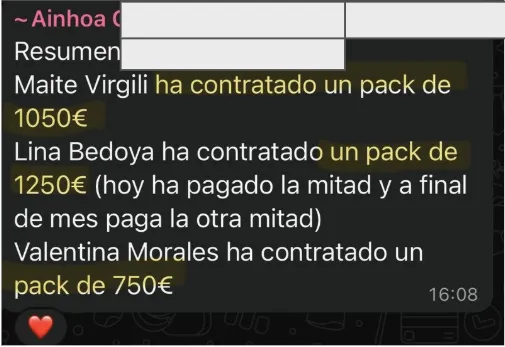 "Limpios para mí, después de impuestos, me han quedado 7.000€. He vendido bonos de un rango de 1.400€ a casi 2.000€ al 80% de los clientes.